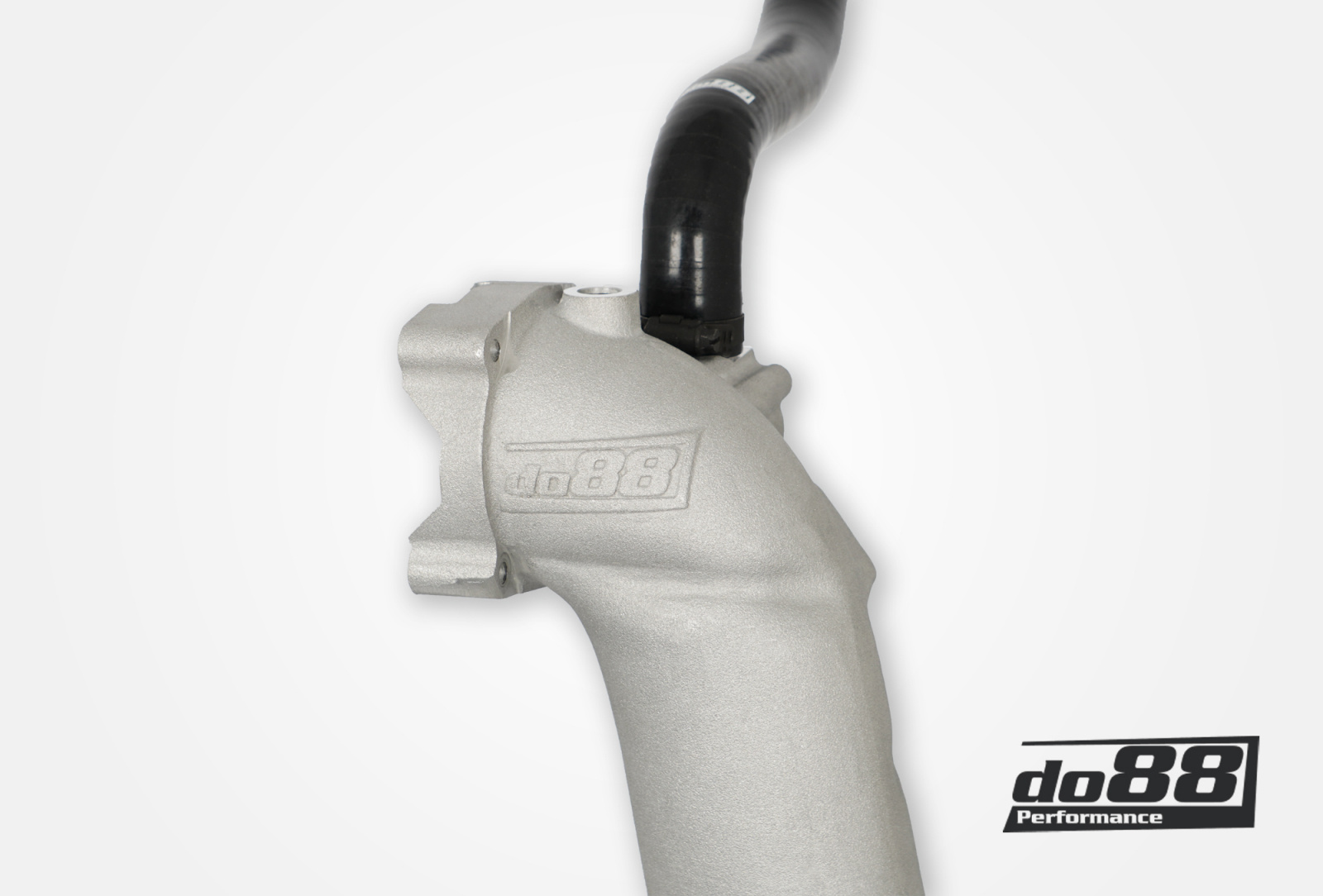 On the hot side (Turbo->Intercooler) our kit features a large 70mm (2 ¾") aluminum pipe that does not have the restrictive flat design found between the engine and the inner wheelhouse as on the OEM pipe. On the cold side (Intercooler->Throttle body) our cast aluminum charge pipe runs all the way from the throttle body down to the intercooler outlet. This pipe has a huge 86mm hose connection towards the intercooler compared to the OEM's 64mm. This connection matches the inner diameter of the do88 Performance Intercooler's large 80mm hose connection. The pipe also features two CNC-machined 1/8 NPT connections, perfect for methanol injection or outlets for example boost pressure sensors.