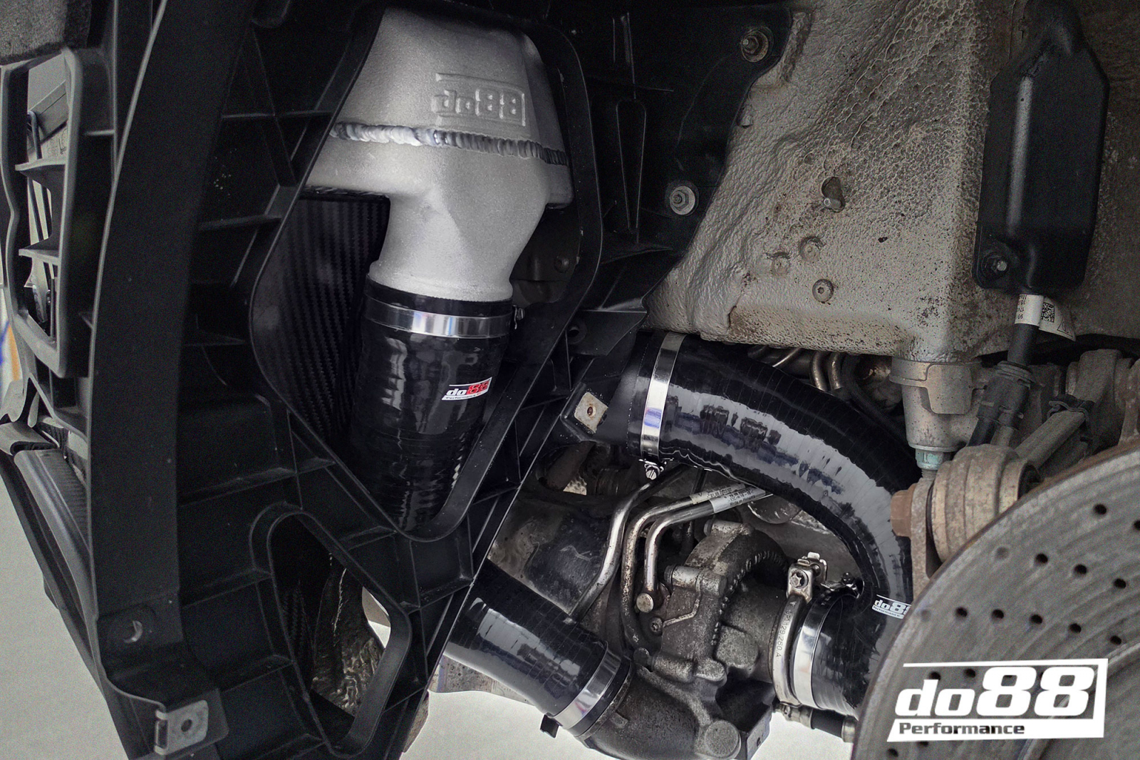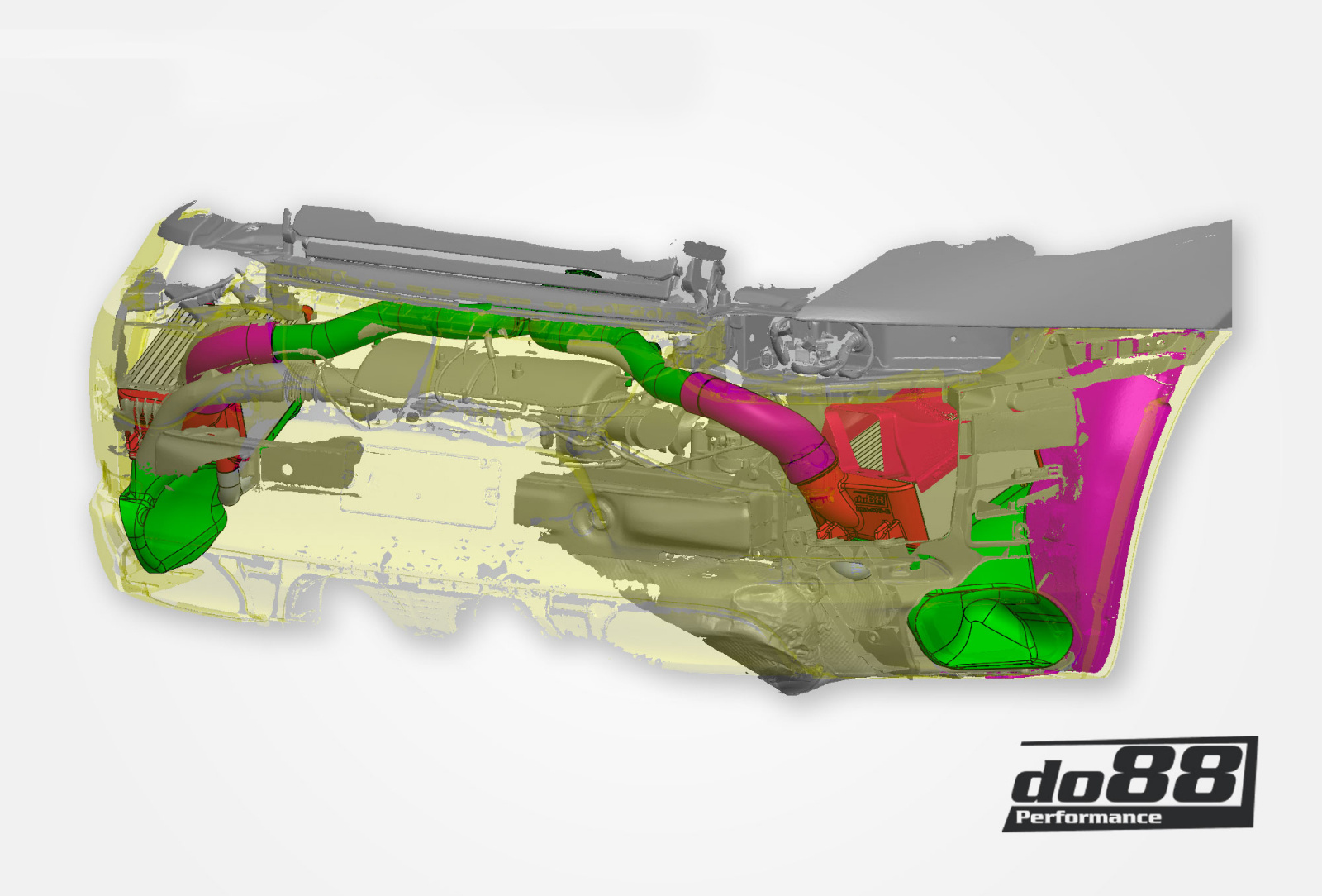 To optimally distribute the flow over the entire core, we use casting, flow-optimized tanks. A well designed tank is essential to maximize heat transfer properties and flow. Flow and cooling capacity directly depend on the dimensions of the core and to utilize as thick a core as possible, we have replaced the upper air guides with carbon fiber guides. These are designed by do88 with 3D scanning as a basis, which guarantees an excellent fit against both the car's bodywork and our large intercoolers.