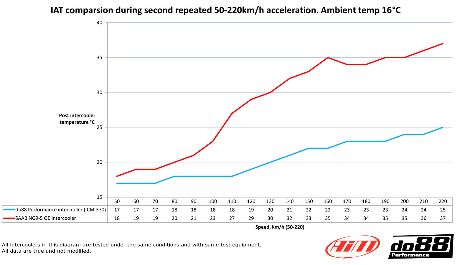 - Post intercooler air temperature at same conditions: 22°C (35°C), do88 13°C lower!
