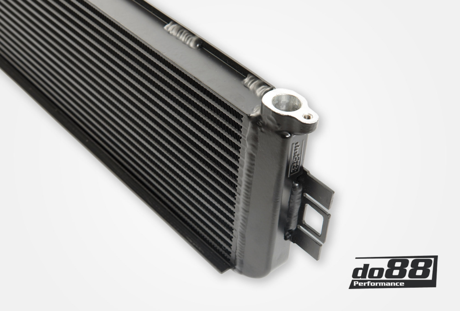 Our upgraded do88 engine oil cooler helps your M2, M3, or M4 maintaining correct oil temperature both on the track and road. Our design increases the active cooling area (+14%) and core volume by (57%) compared to the original oil cooler. The robust Bar & Plate core will withstand road debris and stone chips much better and improve the cooling performance.
