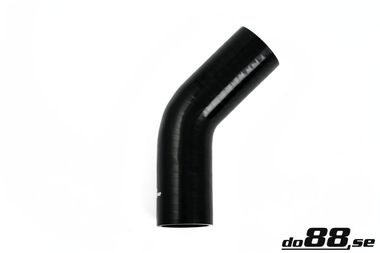 Black silicone hose 45 degree elbow suitable for pressure or suction applications, for example between turbocharger and intercooler or between turbocharger and air filter. Also suitable for coolingsystems.